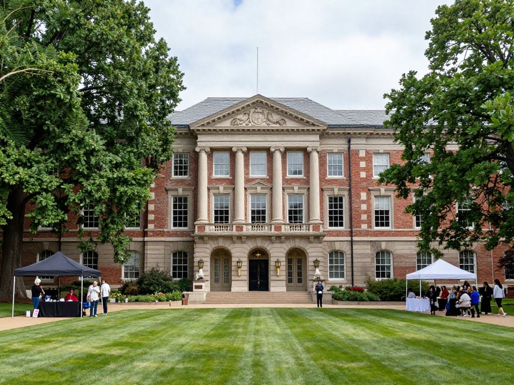 The Cummins Memorial Theological Seminary campus surrounded by historical buildings and community events.