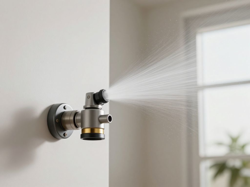Fire sprinklers are part of an automatic fire protection system, consisting of a water supply, a distribution piping network, and individual sprinkler heads. Each sprinkler head is typically equipped with a heat-sensitive glass bulb or a fusible link. When a fire starts, the rising hot air causes the liquid inside the glass bulb to expand until it shatters, or it melts the fusible link. This releases a plug, allowing pressurized water to flow out and spray onto the fire.